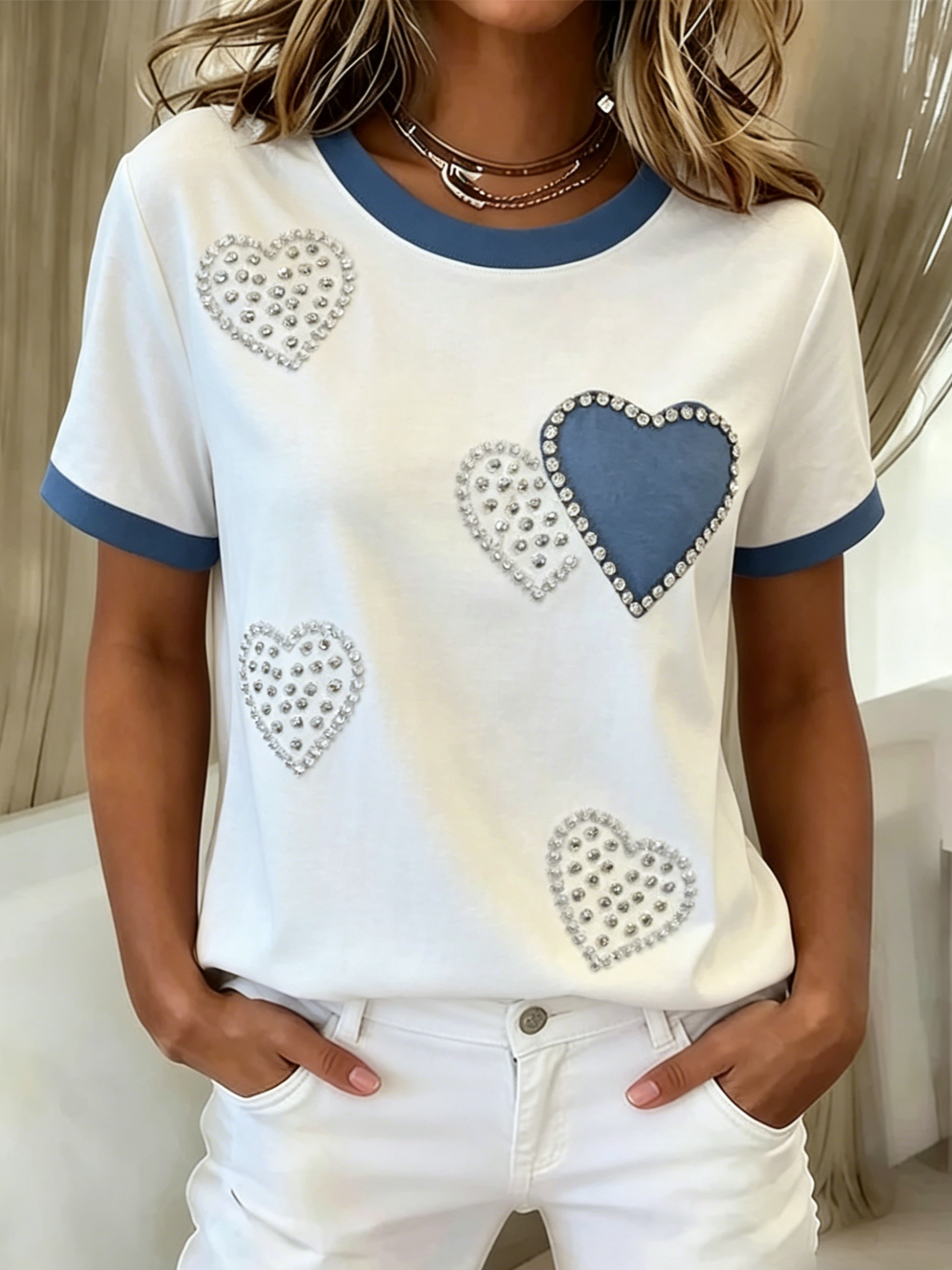 Cotton Crew Neck Casual Heart/Cordate T-Shirt