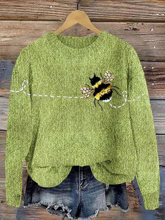 Regular Tops Daily Animal Print Autumn and Winter Long Sleeve Sweater