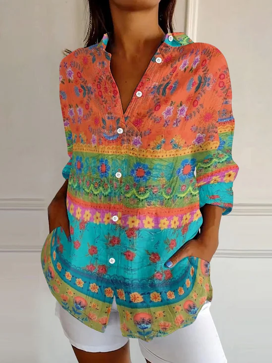 Women's Short Sleeve Shirt Summer As Picture Striped Printing Shirt Collar Daily Going Out Casual Top