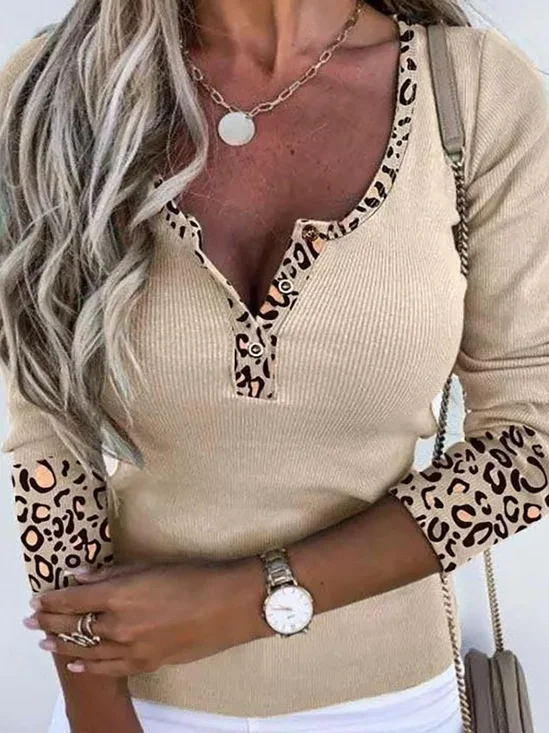 Women's Long Sleeve T-shirt Spring/Fall As Picture Leopard Printing Jersey Crew Neck Daily Going Out Casual Top