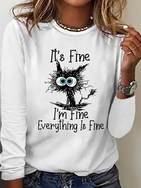 Funny Cat Casual Crew Neck Long Sleeve Shirt