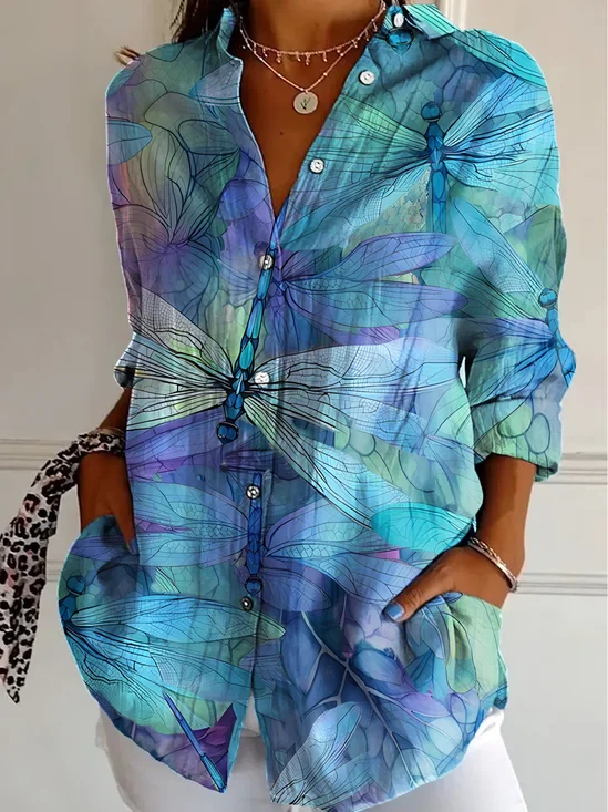 Women's Long Sleeve Shirt Spring/Fall As Picture Floral Buckle Shirt Collar Regular Sleeve Daily Going Out Casual Top