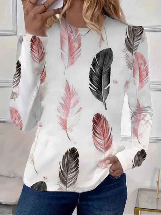 Women Casual Summer Feather Pattern No Elasticity Daily Loose Jersey Regular Regular T-shirts
