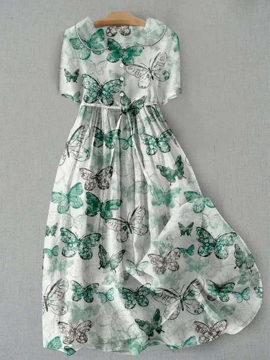 Women Simple Butterfly Spring/Fall Daily Loose Jersey Crew Neck H-Line Regular T-shirts