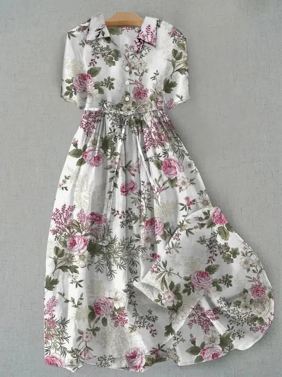 Women Summer 3D Printing Polyester Micro-Elasticity Loose Maxi Regular Shirt Dress Dresses