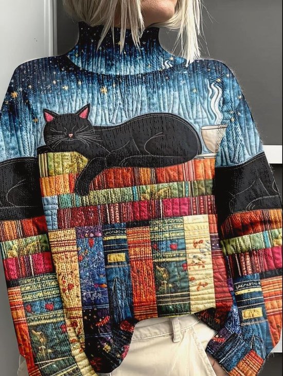 Women's time-traveling Santa Claus and cat print ugly sweatshirt