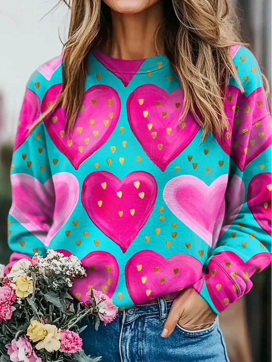 Valentine's Day Crew Neck Simple Cotton-Blend Sweatshirt