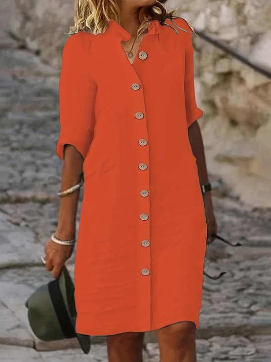 Women's Three Quarter Sleeve Spring/Fall Blue Plain Split Joint Shawl Collar Daily Going Out Casual Maxi A-Line Fit & Flare Dress Dress