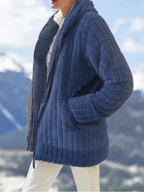 Plain Hoodie Fluff/Granular Fleece Fabric Casual Teddy Jacket
