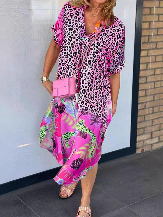 Women's Short Sleeve Summer Pink Tie Dye Printing V Neck Daily Going Out Casual Maxi Classic Dress