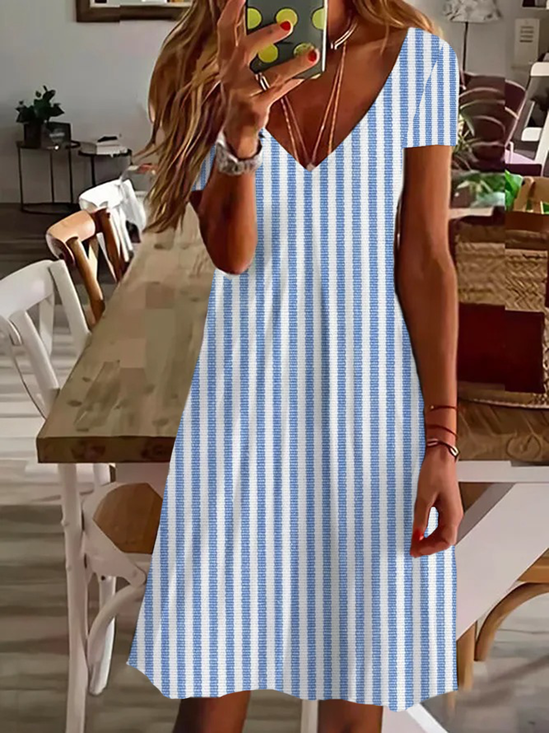 Women's Striped Spring Print Casual Short Sleeve V-Neck Dress