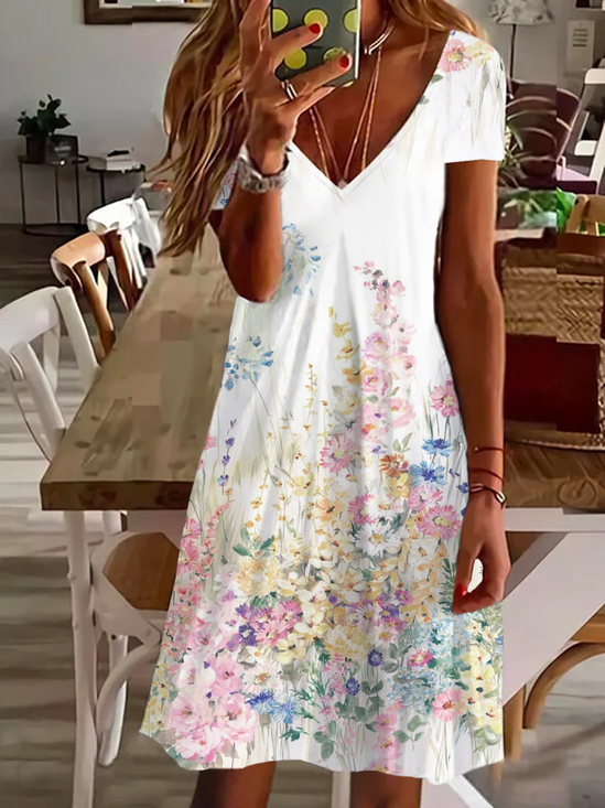 Women's Short Sleeve Spring Floral Print V Neck Casual Dress
