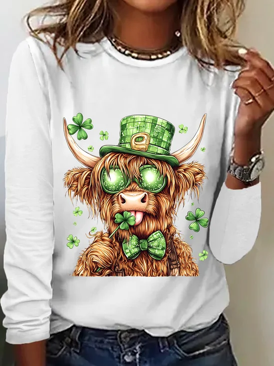 Women's St. Patrick's Day Shamrock Print Casual Round Neck Long Sleeve T-Shirt