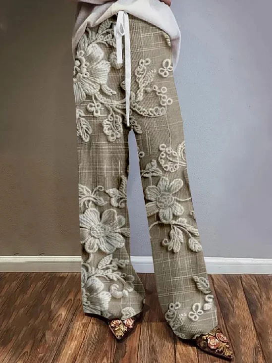 Women Casual Floral Summer Cotton Natural Daily Regular Fit A-Line Regular Pants