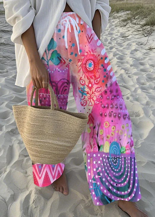 Women's Retro Abstraction Art Printed Cotton And Linen Casual Pants