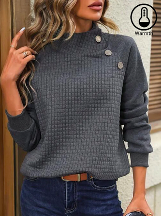 Women's Plaid Print Button-Up Casual Waffle Knit Sweatshirt