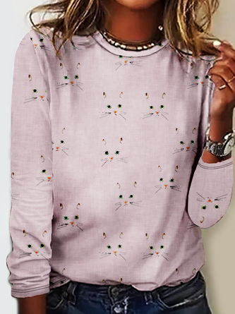 Womens Autumn Art Design Printed Pit Fabric Fabric Long Sleeve T-Shirt