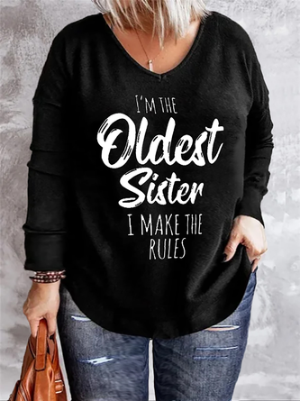 Plus size Text Letters Casual Crew Neck T-Shirt