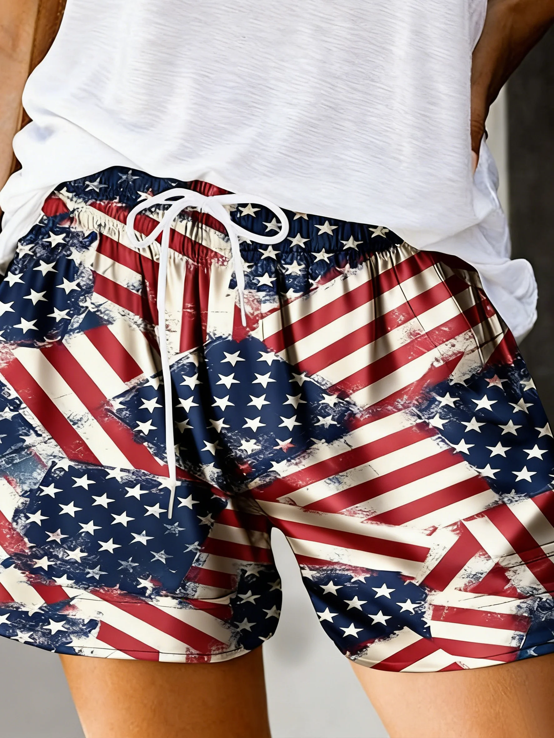 America Flag High Waist Wide Leg 250th Anniversary Summer Casual Shorts