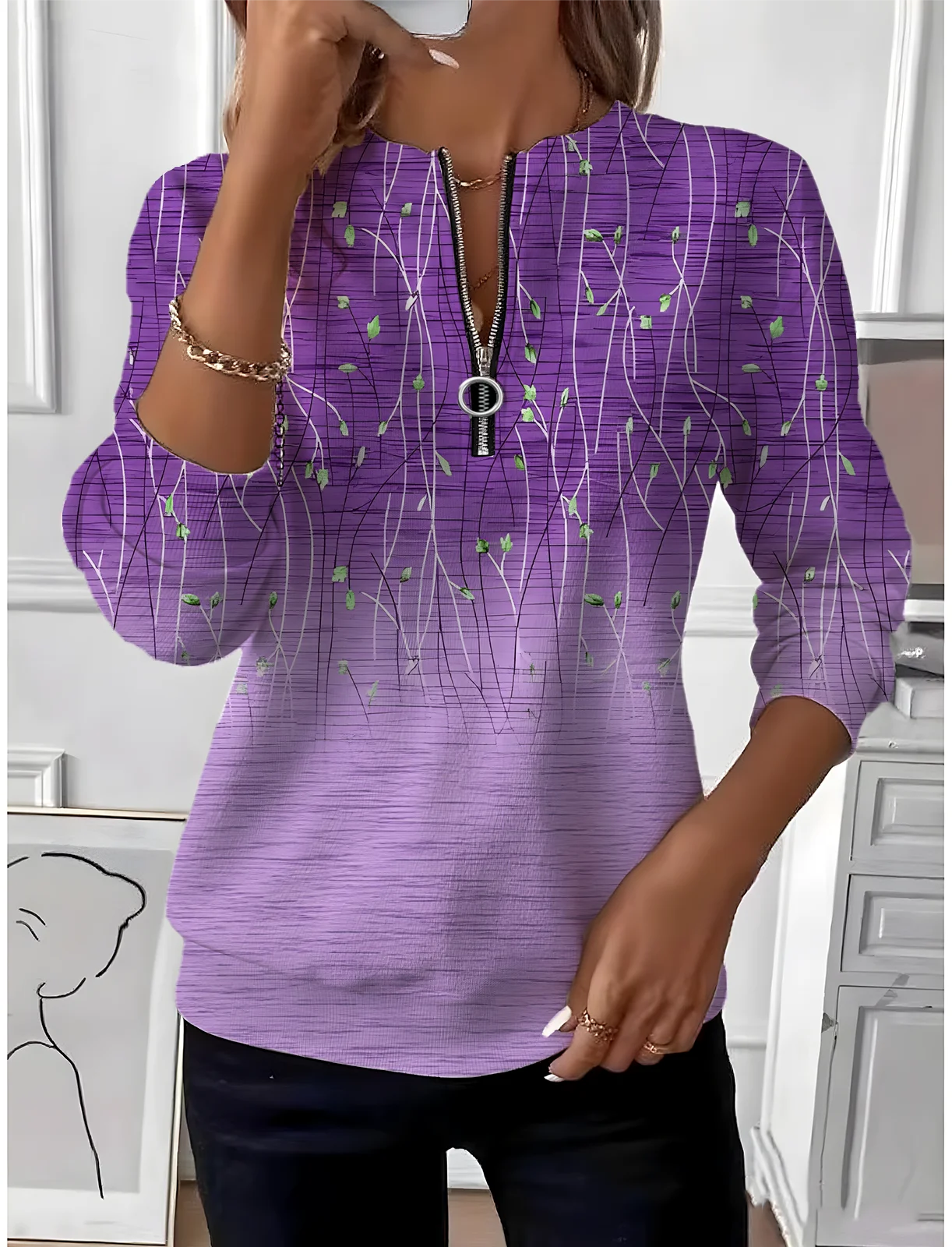 Casual Crew Neck Gradient Pattern Loose Sweatshirt
