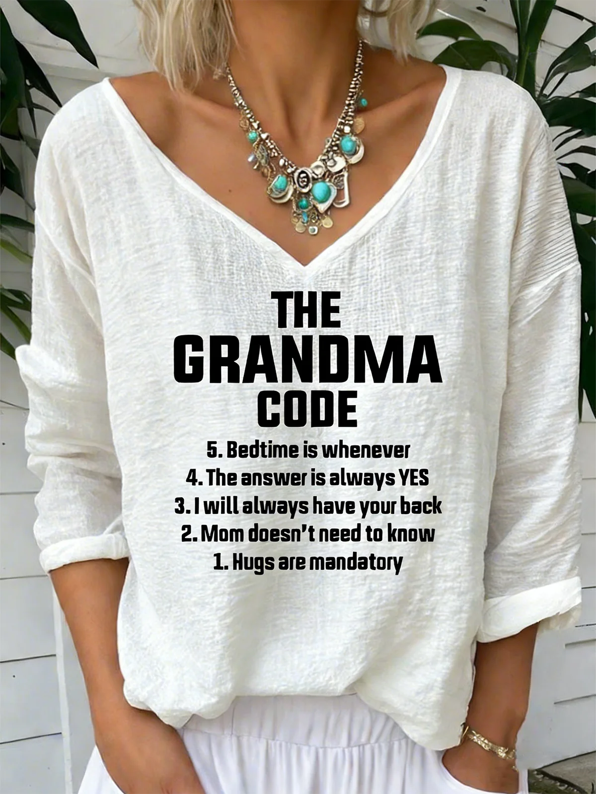 Cotton-Blend V Neck Letter Pattern Vintage T-Shirt