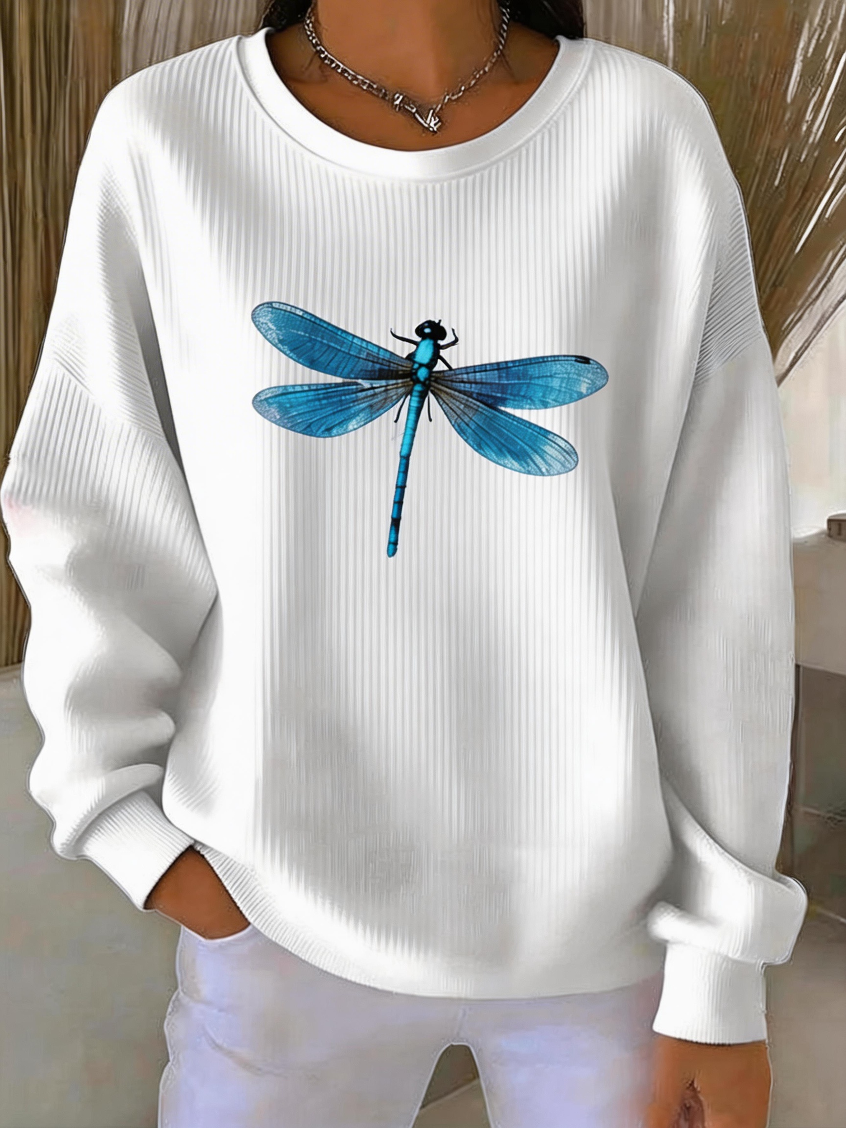 Dragonfly Crew Neck Loose Casual Sweatshirt