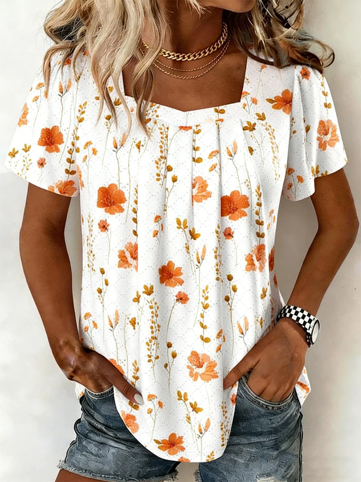 Neckline:Square neck