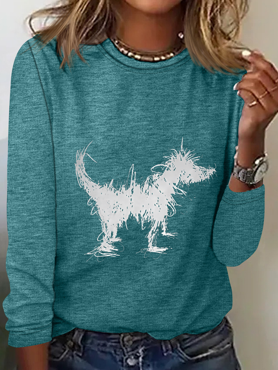 Fun Furry Puppy Art Casual Long Sleeve Shirt