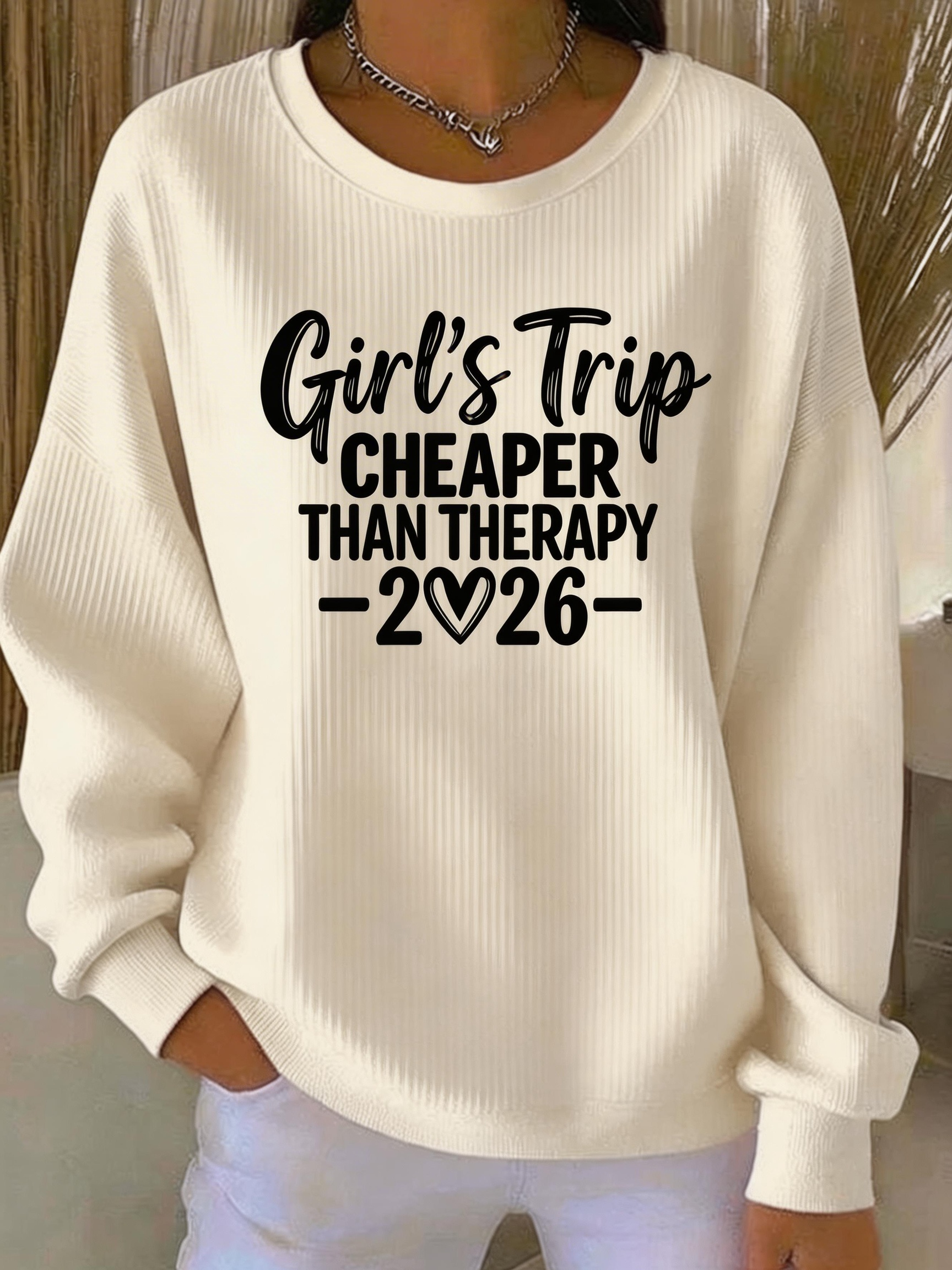 Letter Pattern Casual Crew Neck Loose Sweatshirt