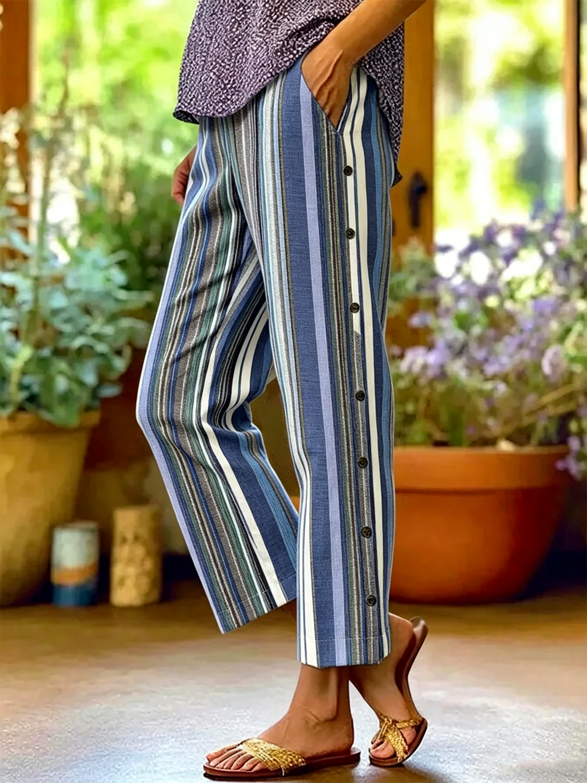Linen Blend Casual Loose Striped Pants
