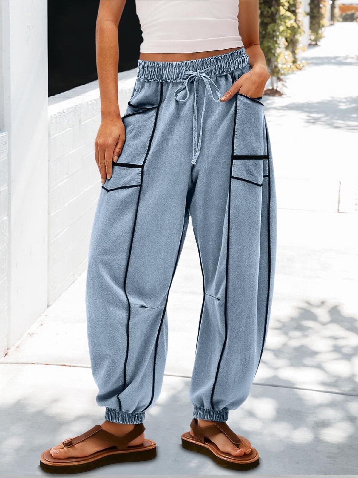 Loose Cotton Plain Casual Pants
