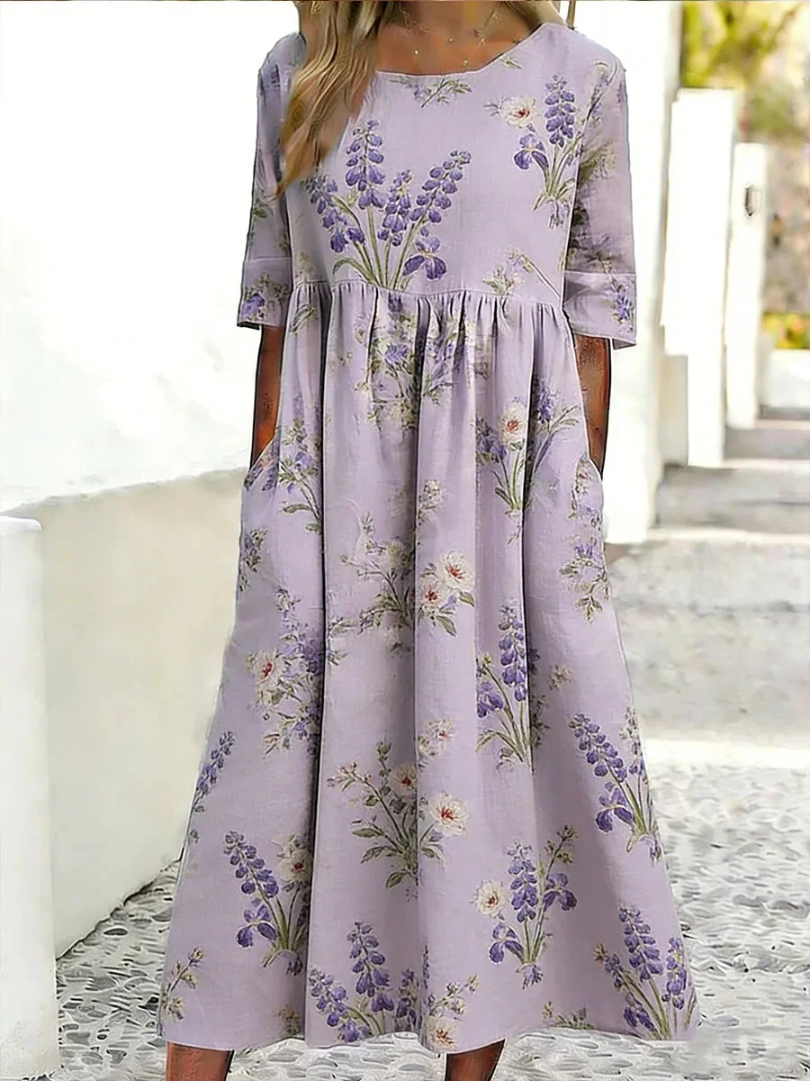 Loose Elegant 3D Printing Crew Neck Dress With No