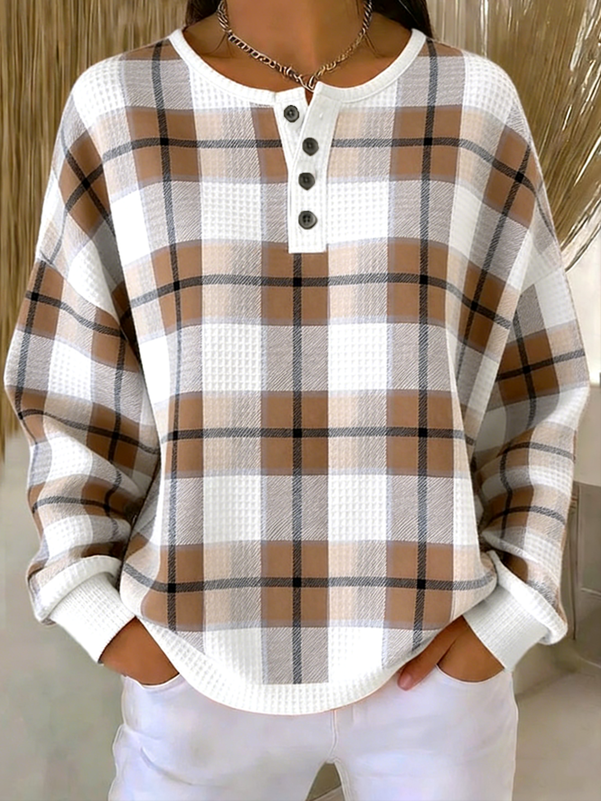 Others Casual Loose Plaid Sweatshirt