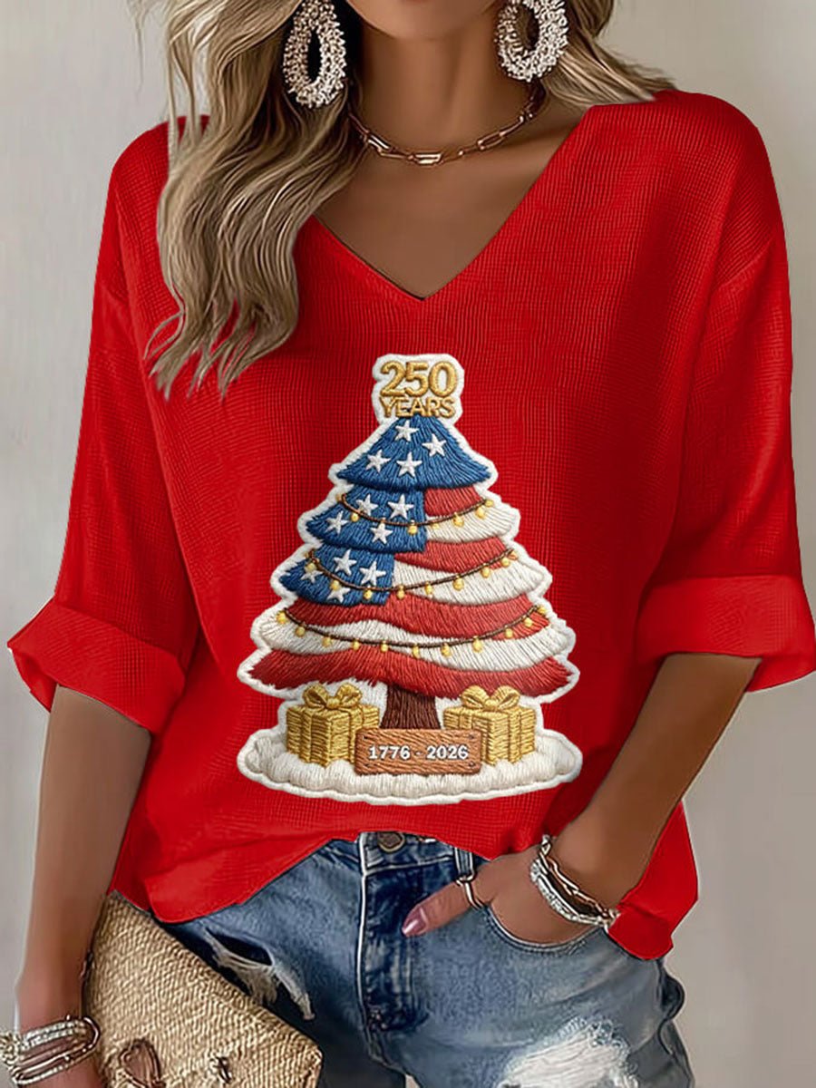 Women's 250th Anniversary Christmas Tree Print Casual T-Shirt