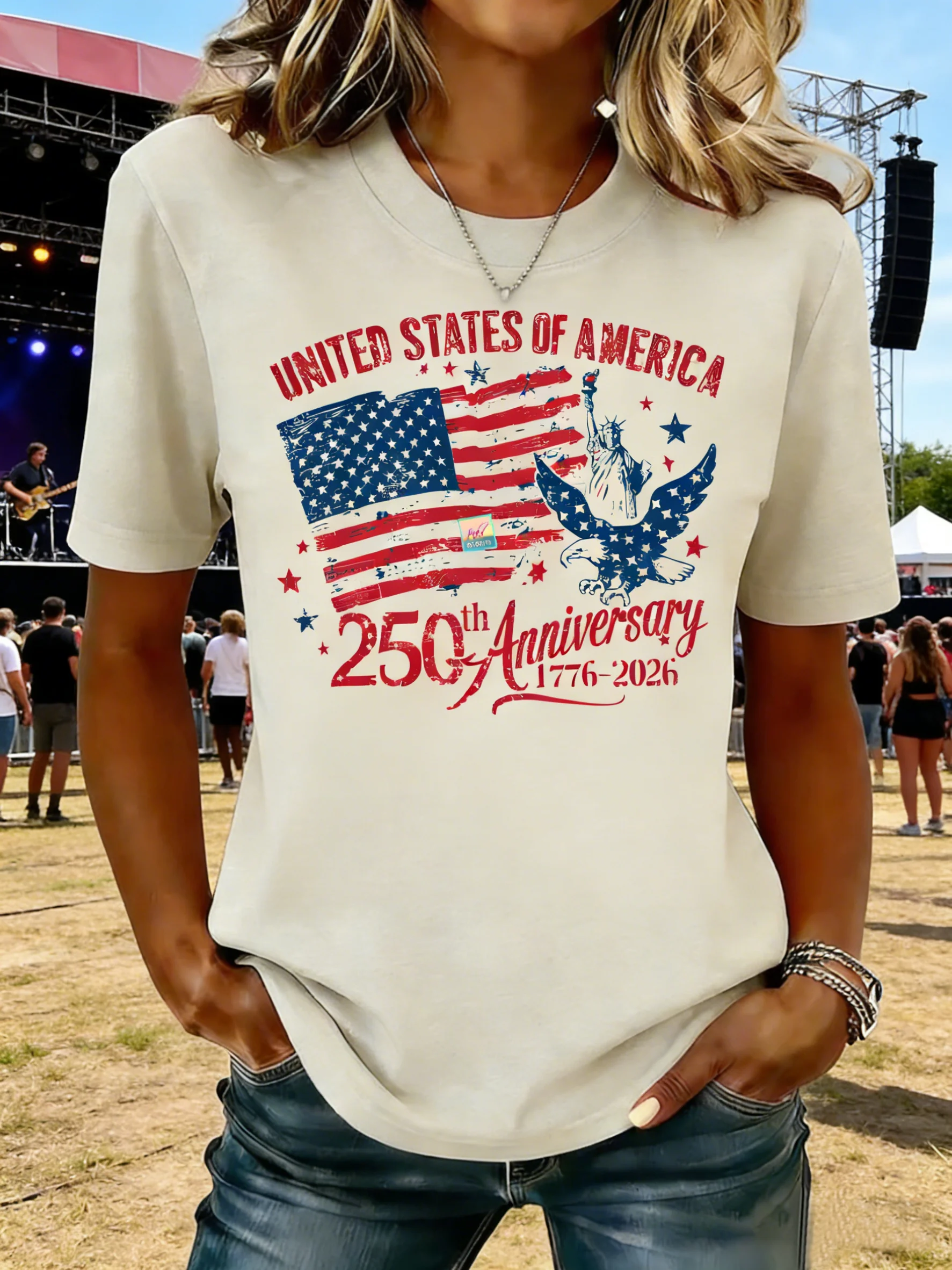 Women's 250th Anniversary Of The Founding Of the United States Vintage Short Sleeve Crew Neck Music Festival 3D Printing Daily Going Out Casual T-Shirt