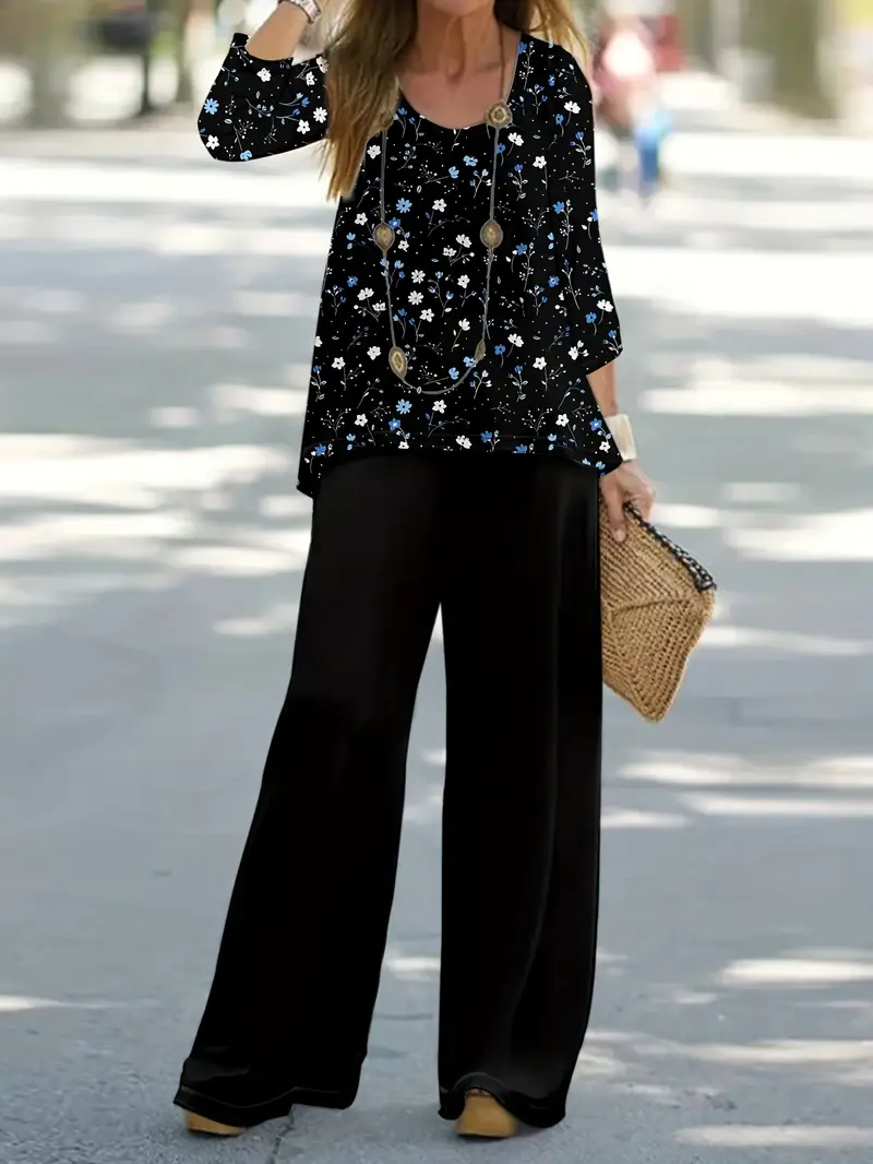 Women's Floral Print Casual Two-Piece Suit