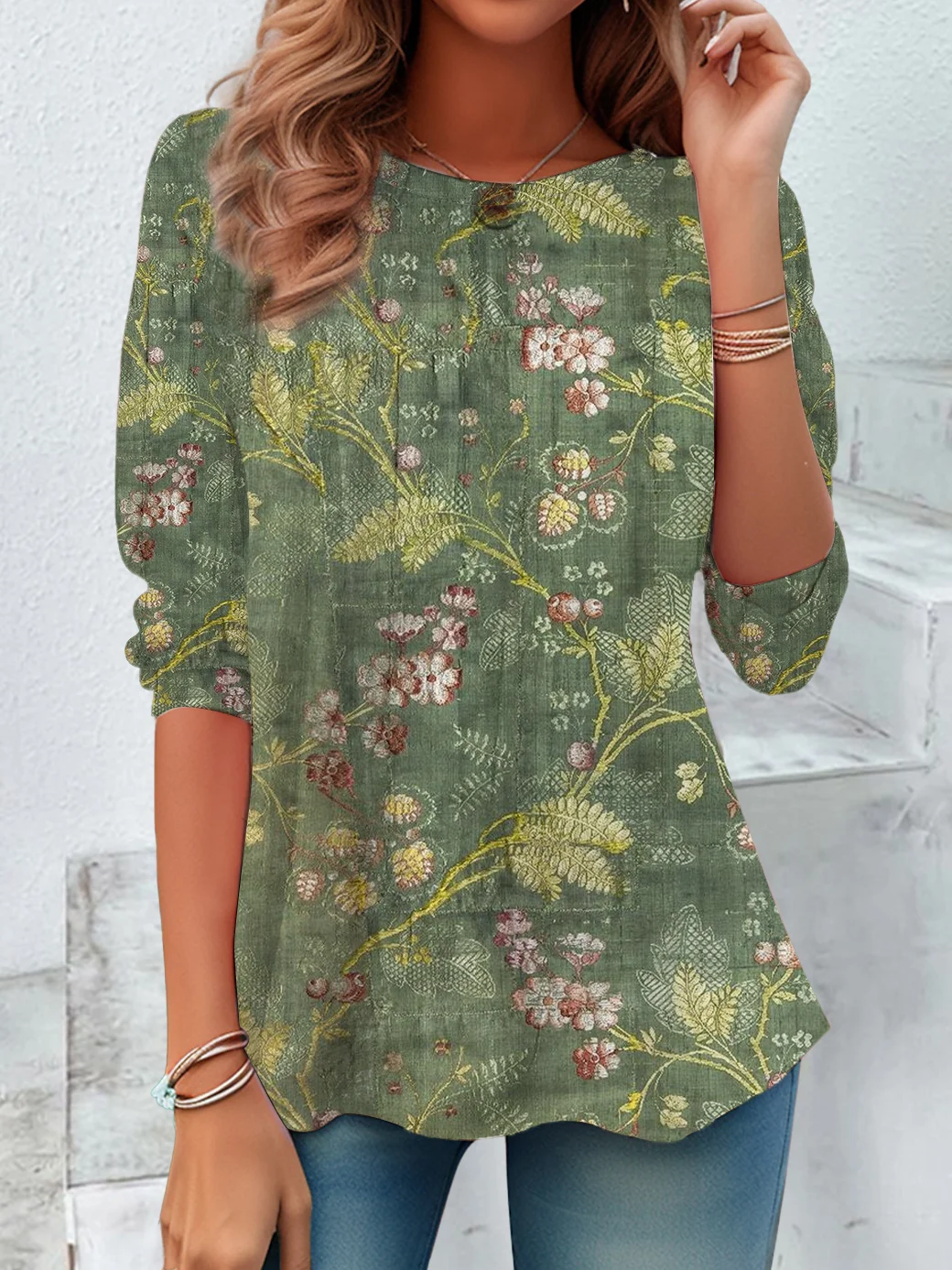 Women's Floral Spring Print Casual Crew Neck Tunic T-Shirt