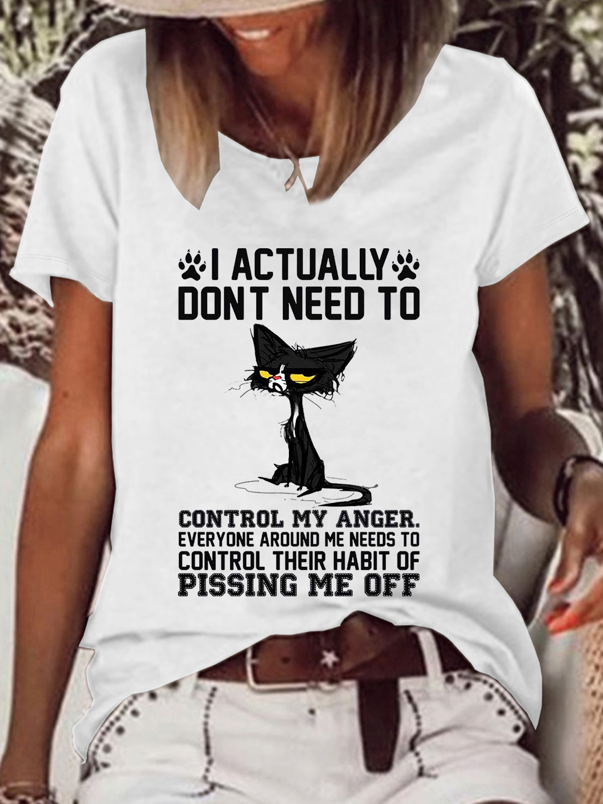 Women's Funny Black Cat I Actually Don't Need to Control My Anger Everyone Around Me Needs to Control Their Habit of Pissing Me Off T-Shirt