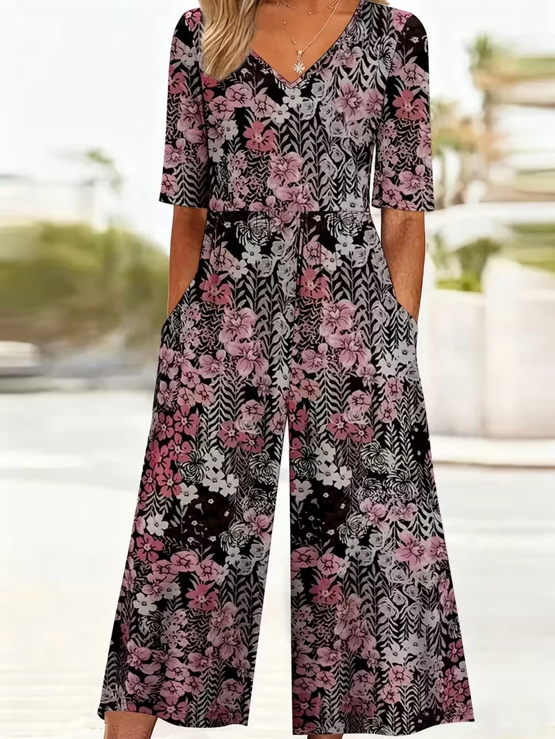 Women's H-Line V Neck Daily Going Out Casual Printing Floral Summer Ankle Pants Jumpsuit Romper