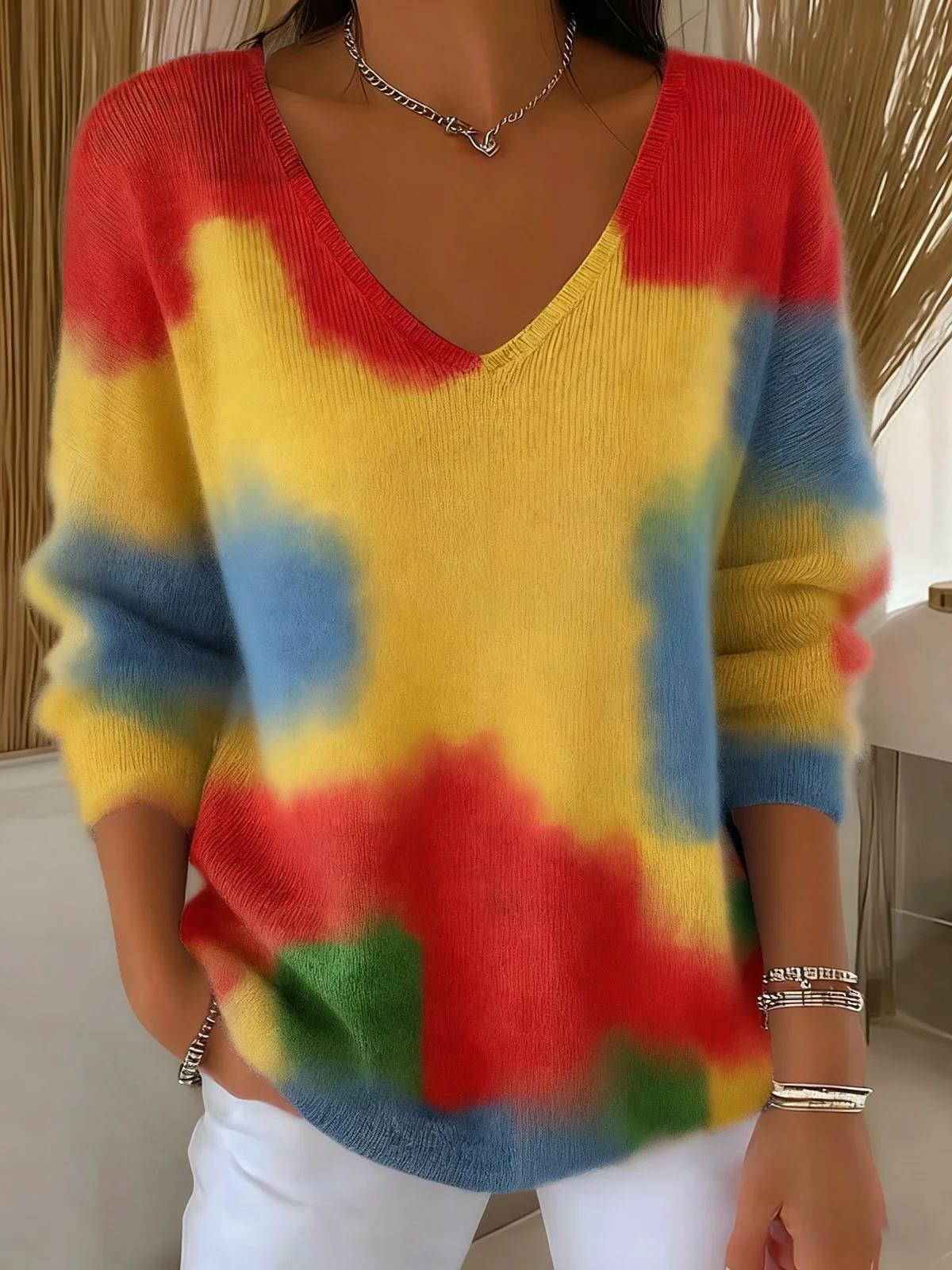Women's Long Sleeve T-shirt Spring/Fall As Picture Abstract Printing V Neck Daily Going Out Casual Top