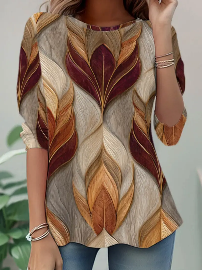 Women's Long Sleeve T-shirt Spring/Fall Brown Abstract Jersey Crew Neck Daily Going Out Casual Tunic Top