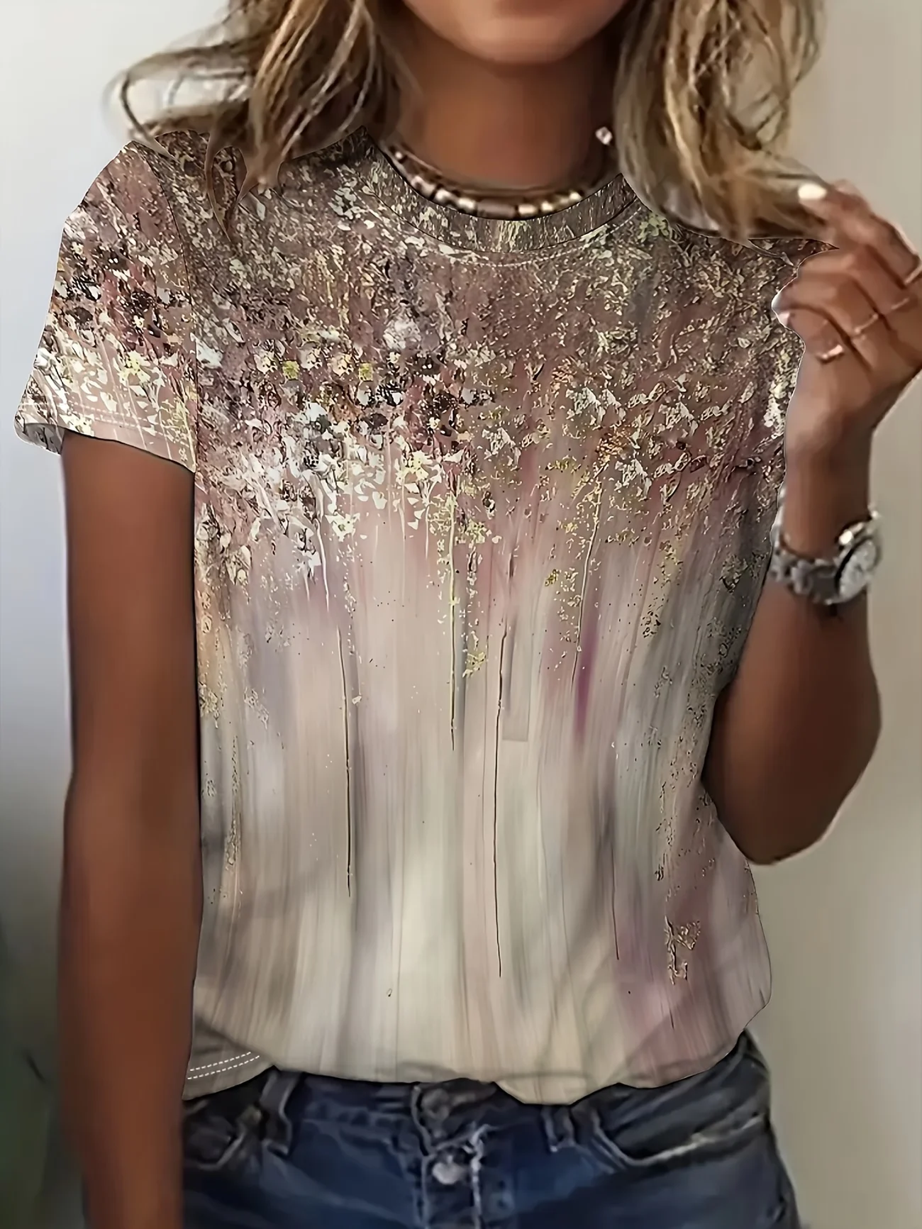 Women's Short Sleeve T-shirt Summer As Picture Abstract Printing Jersey Crew Neck Daily Going Out Casual Top